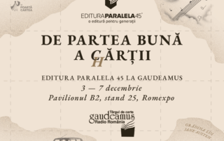 În perioada 3-7 decembrie, echipa Editurii Paralela 45 vă așteaptă la standul 25, din pavilionul B2 al Romexpo, la o nouă ediție a Târgului de Carte Gaudeamus Radio România. Vă invităm, alături de noi, de partea bună a hărții, într-o zonă în care libertatea și cultura se susțin reciproc. Mizând pe un joc de cuvinte care derivă de la noul album din colecția Metamorfoze, De partea bună a hărții, de Cătălina Bălan, standul nostru prezintă [...]